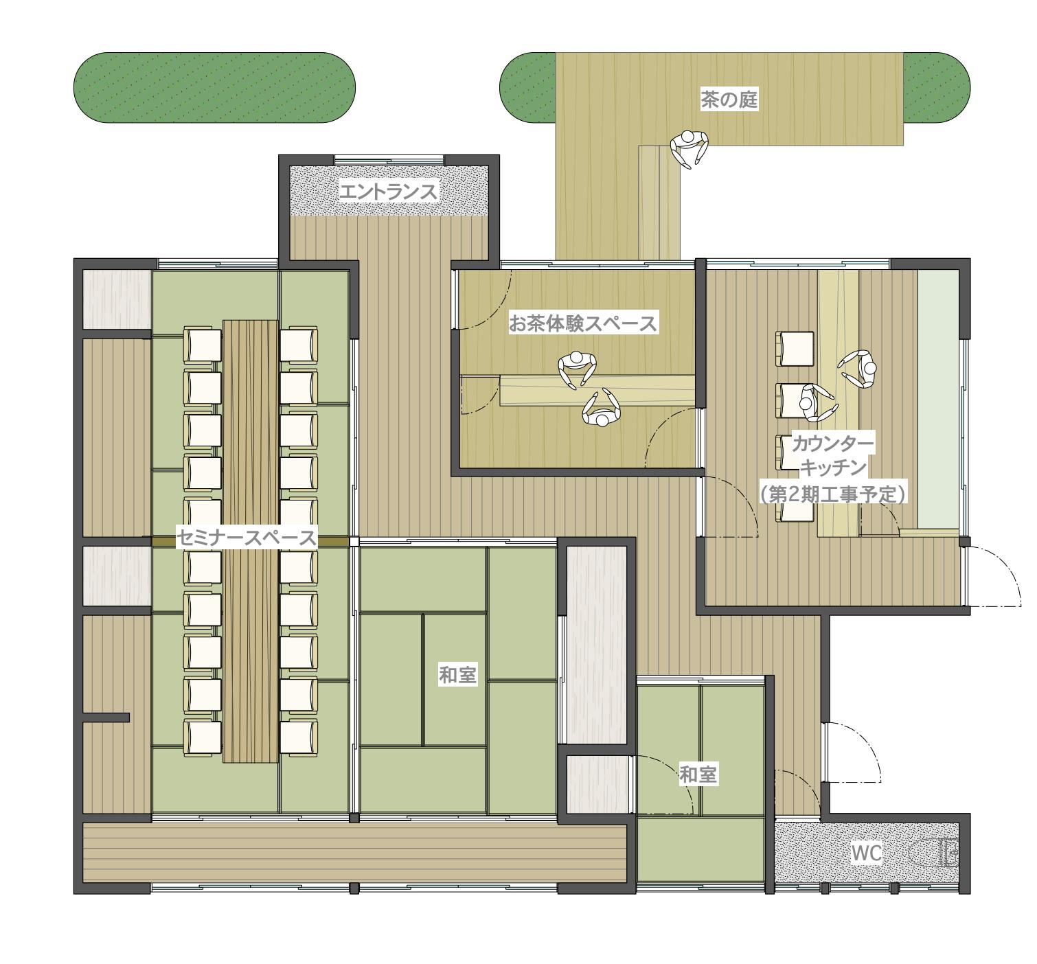 またこちらは古民家抹茶カフェの施工図です。1階のイメージ画像がこちらです。