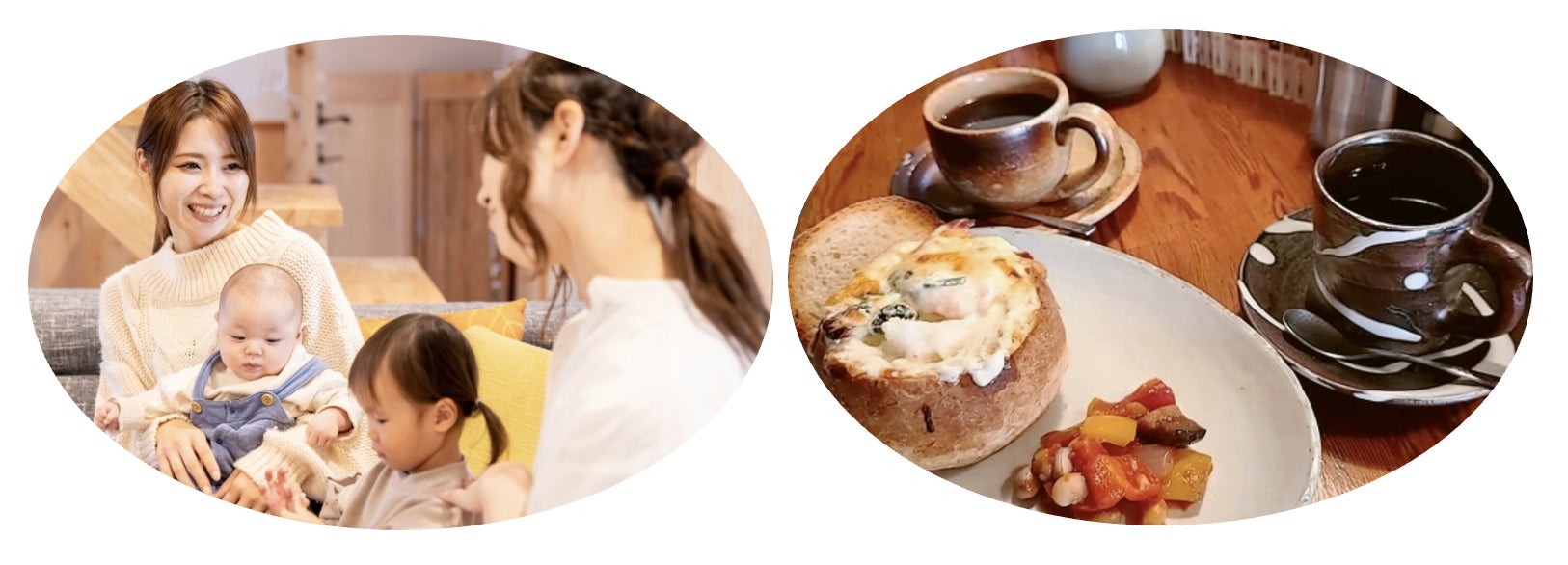 カフェと見間違えるような建物に入ると、そこではママたちが子育ての話をしたり相談をおこなったり、またベビーマッサージや手作りおもちゃ教室がおこなわれていたりと、多様な取り組みがなされます。
