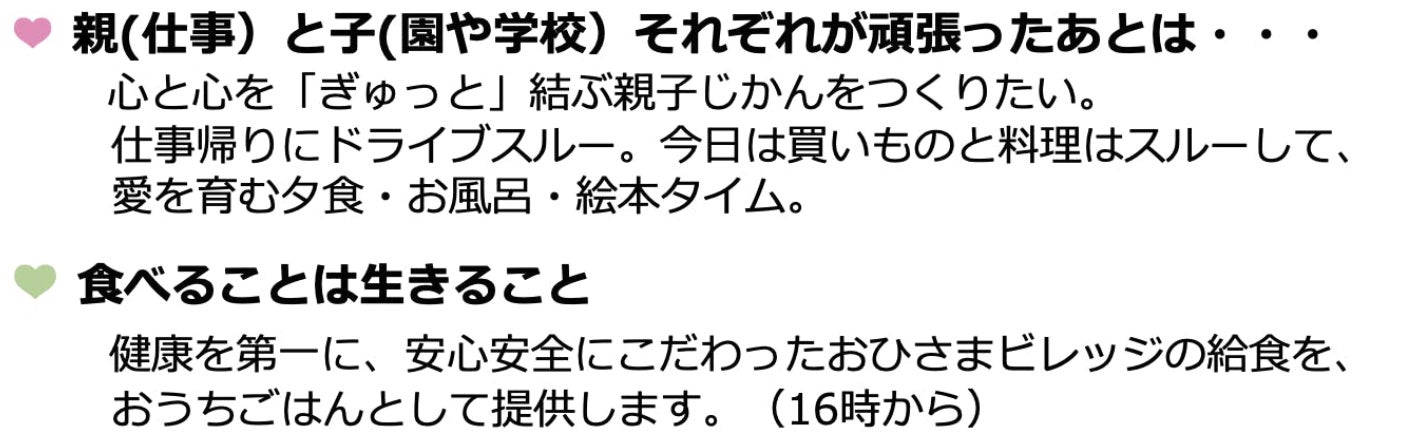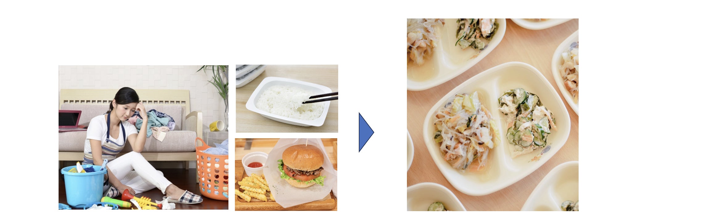 ・・・そんなひらめきを実現させ、お腹が空く夕飯時に少しでも早く、温かく、お家に帰ったらすぐに食べれる優しい夕食を提供します。