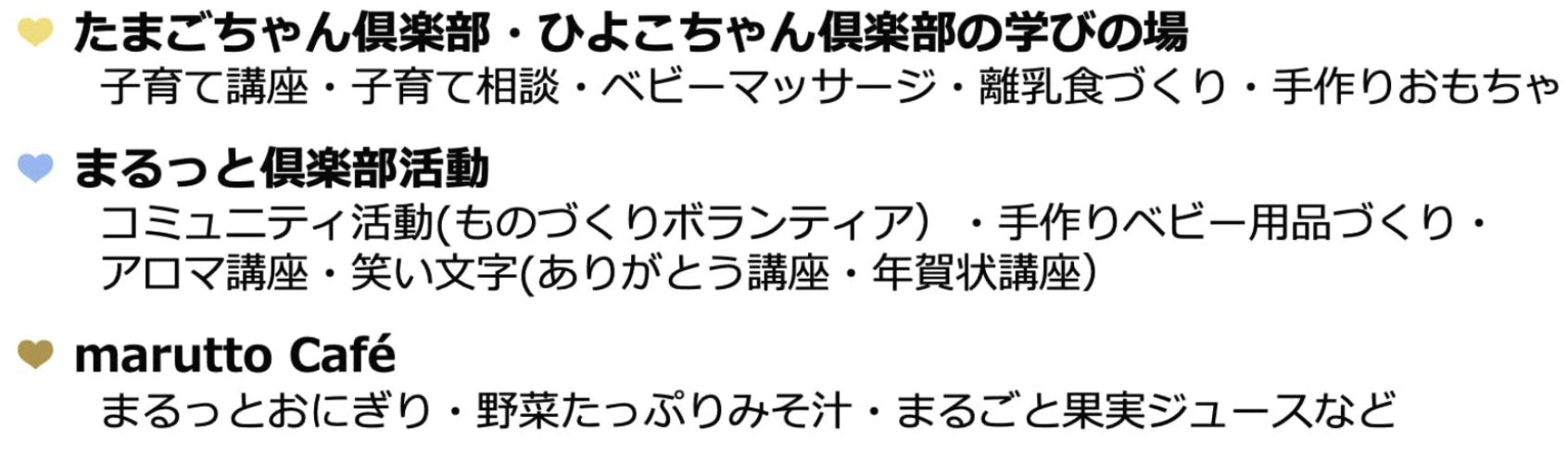 そこで、多くの出会いをつなぐ子育て拠点が必要!と強く感じ、地域とつながる子育て拠点「marutto」(まるっと)設立に向けて取り組んでいます。