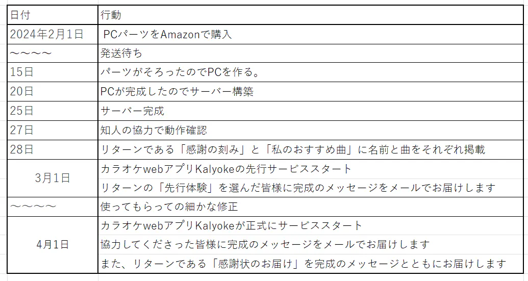 掲載終了後(2/1以降)には下記の表のスケジュールを遂行します