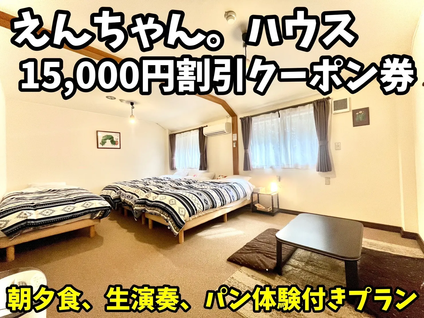 ファミリー向けペンション「えんちゃん。ハウス」の15,000円割引クーポン券をお送りいたします!