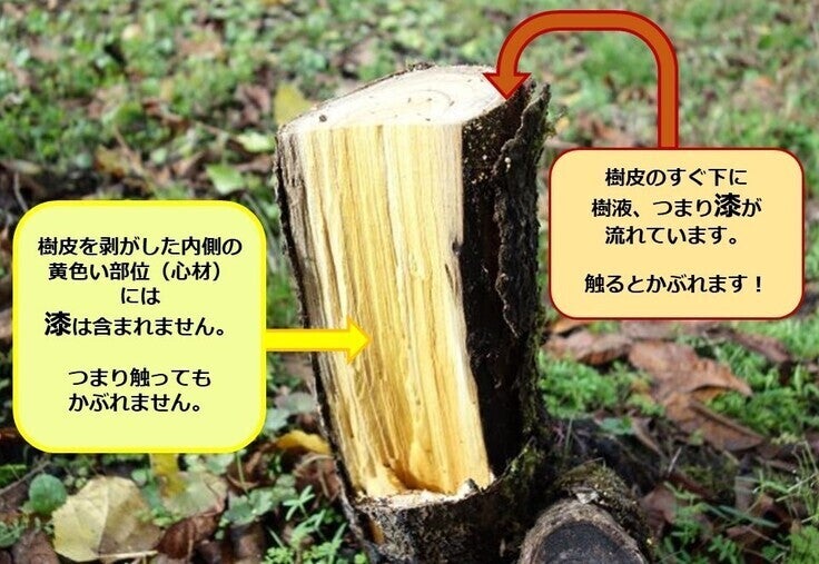 かぶれる可能性のある漆液は樹皮のすぐ下にあるので、