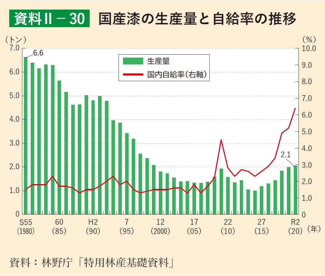■自給率10%未満。自然の素材「漆」とウルシの木を取り巻く厳しい現状