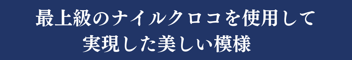 ナイルクロコは高級品用の素材としてヨーロッパでも古くから使われている革で、クロコの象徴でもある腑模様がバランス良く、そして細かく綺麗に並んでいるのが特徴です。
