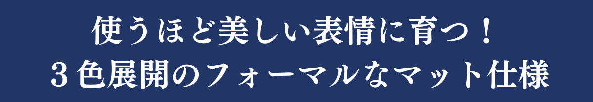 革の仕上げは、傷がつきにくく、そして使うほどに表情が変わり、革のエイジング(経年変化)をお楽しみいただるマット加工を施しています。