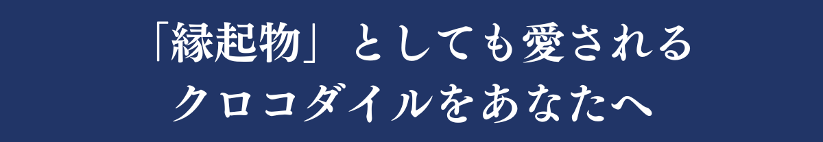 また、クロコダイルは地球上で最も噛む力が強い生き物で「一度獲物を掴んだら離さない」と言われていることから、「金運」や「仕事運」を離さない縁起物として、昔から愛されています。