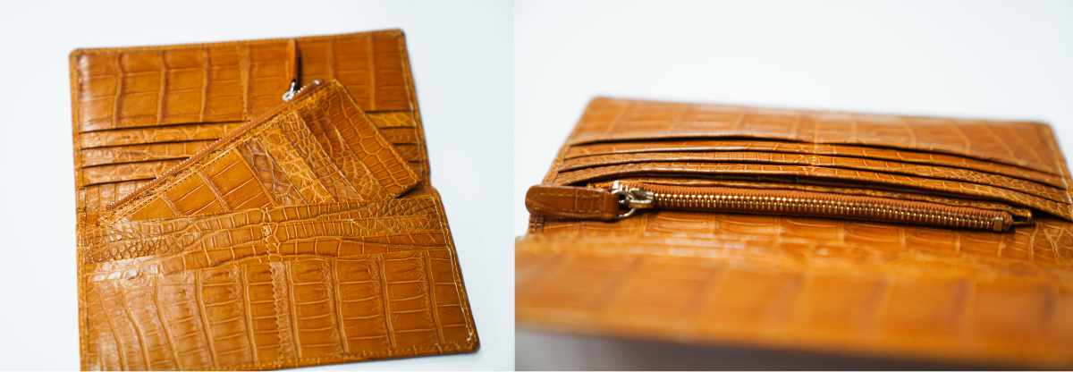 こちらも同じくナイルクロコの革を使用しており、見た目の美しさだけでなく使い勝手の良さにもこだわっています。