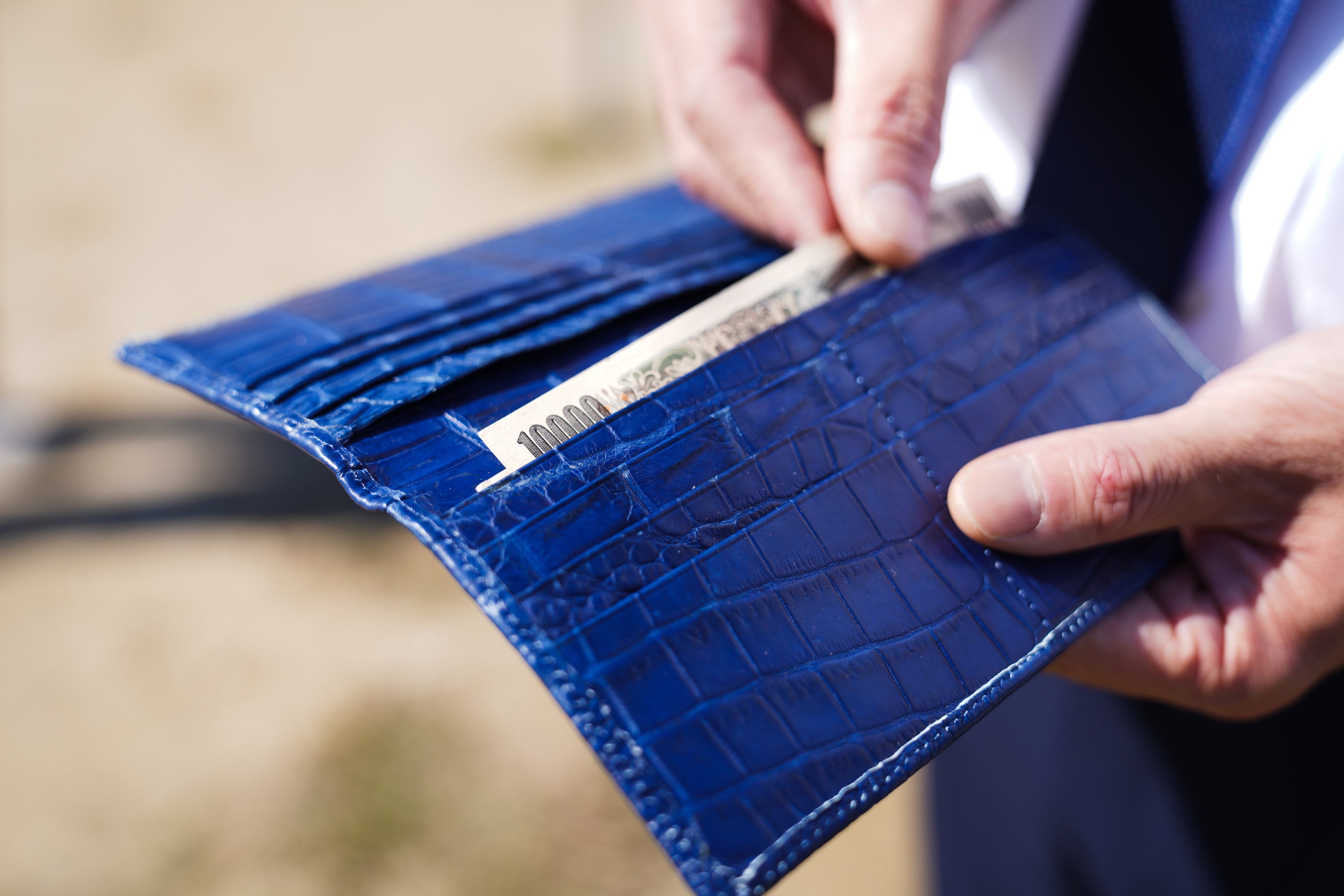 創業100年以上続く製革業者の協力を得ながら、革職人が細部に至るまで徹底的にこだわって作り上げた、唯一無二のクロコダイル財布が誕生しました。