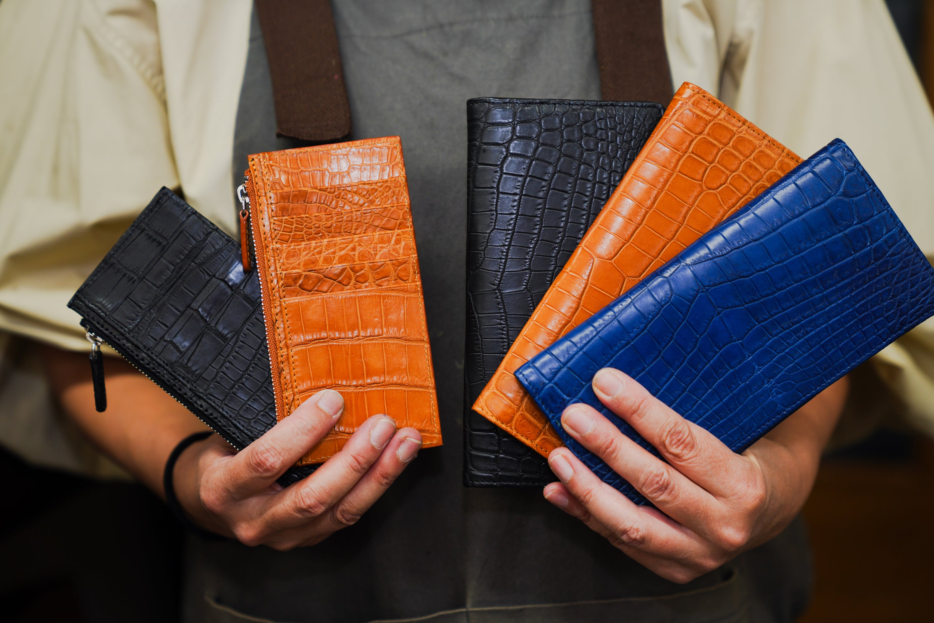 その大きな理由が、良質なクロコダイルの革を直仕入れできていること。これまでの長い経験や築き上げてきたご縁のおかげで、通常ではできない革の仕入れが実現できました。