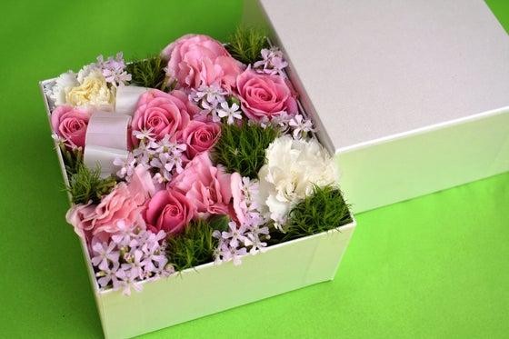 初回のフラワーギフトは3種類のボックスフラワー(生花)の中から