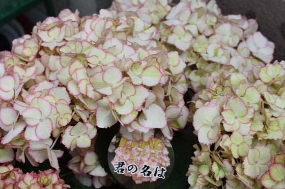本日、珍しいアジサイが入荷しました。 「君の名は」というアジサイです。 2018年度の新品種で淡い色合いが特徴的な、なんとも言えない色です。 私自身も初めてみたので、調べてみると「今年の新品種」とか「売り切れ続出」とかになっているので珍しいものだと思います。 欲しいという人がいたら、「新しいリターン」に追加するので、メッセージください。