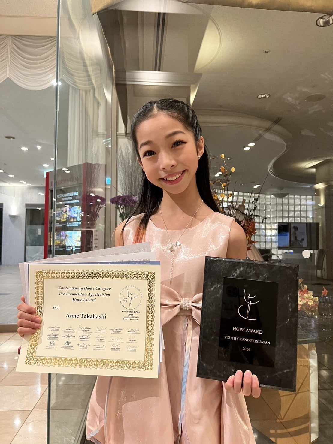 10歳で挑戦した2回目のユースグランプリではクラシック1位、コンテンポラリー1位という成績を残すも、最優秀賞であるホープ・アワードを逃した事が悔しくて大粒の涙を流していました。涙する杏を抱きしめてくれ、たくさん励ましてくださったのがYAGP創設者であるラリッサ先生、そしてスカラシップを担当していらっしゃる川西さん、世界中から集まってくれていた審査員の先生方でした。