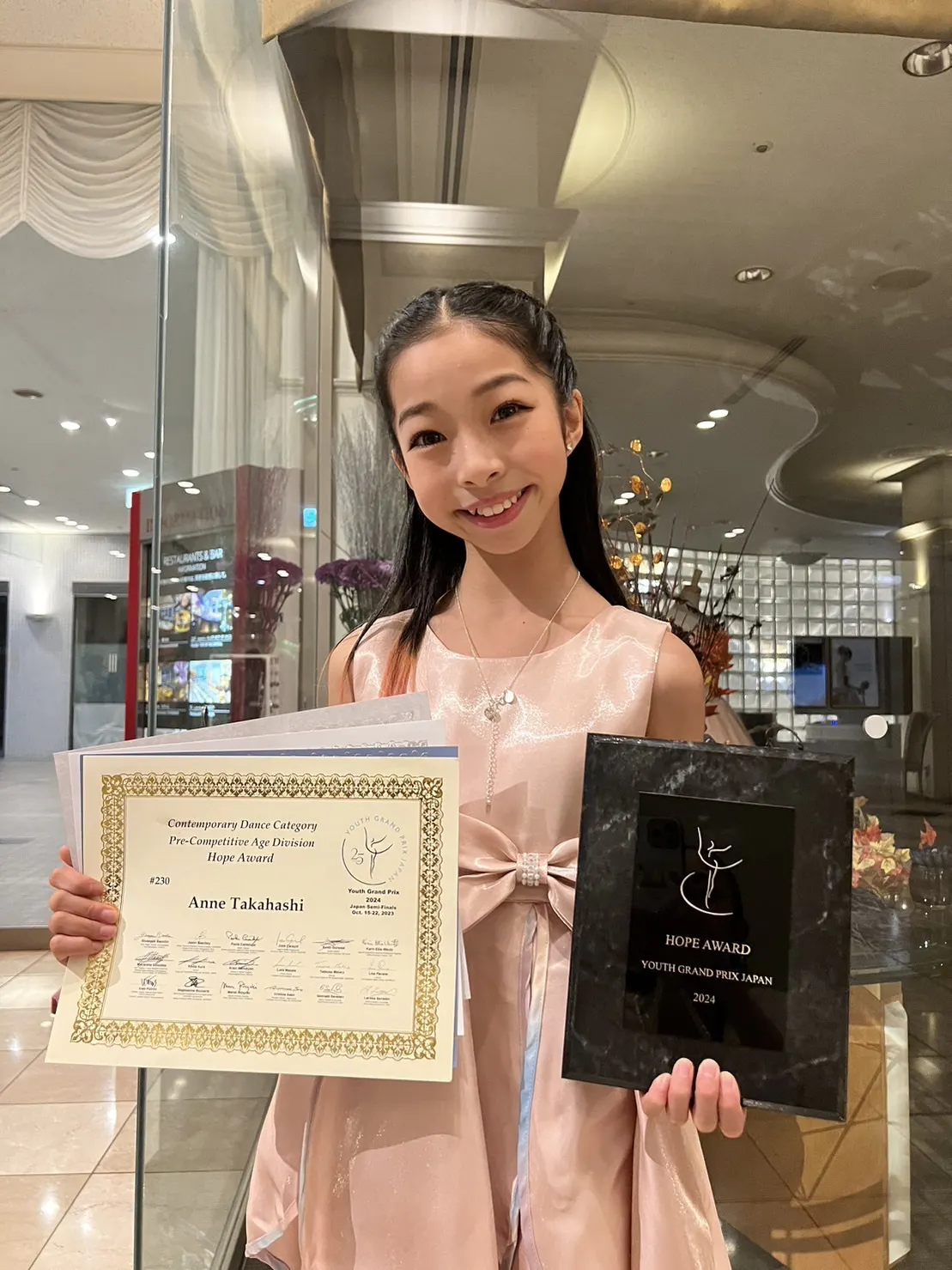 10歳で挑戦した2回目のユースグランプリではクラシック1位、コンテンポラリー1位という成績を残すも、最優秀賞であるホープ・アワードを逃した事が悔しくて大粒の涙を流していました。涙する杏を抱きしめてくれ、たくさん励ましてくださったのがYAGP創設者であるラリッサ先生、そしてスカラシップを担当していらっしゃる川西さん、世界中から集まってくれていた審査員の先生方でした。