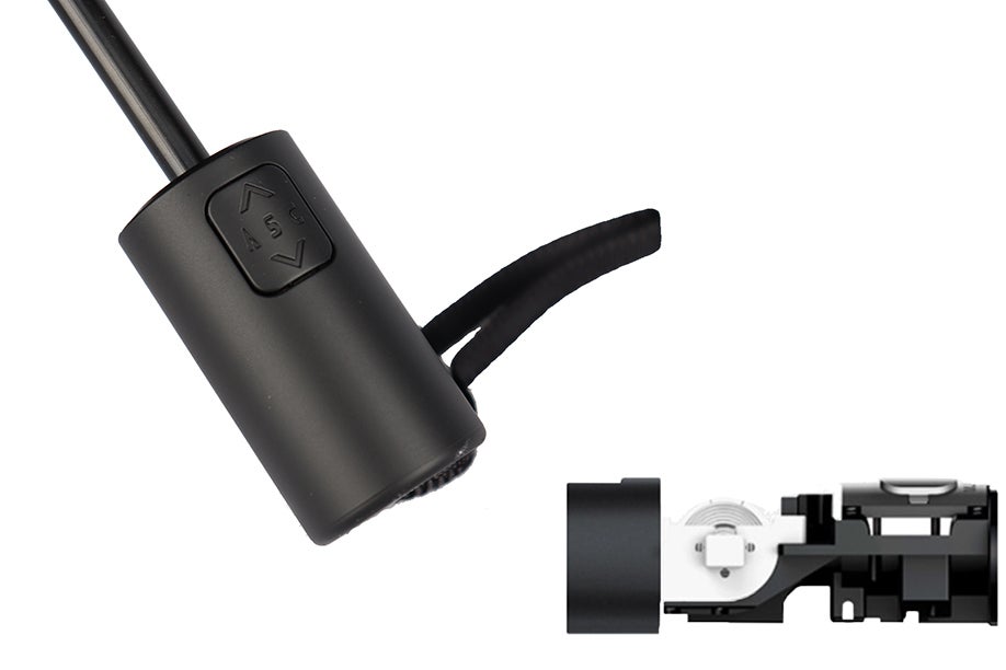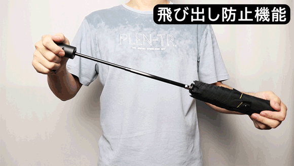 最後まで縮めないと飛び出す従来の傘とは違い、「Prelu」は飛び出し防止機能を搭載したことで、縮める途中で手が離れてもハンドルが飛び出さない構造です。
