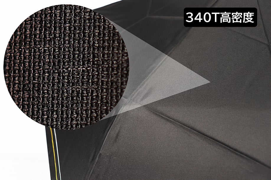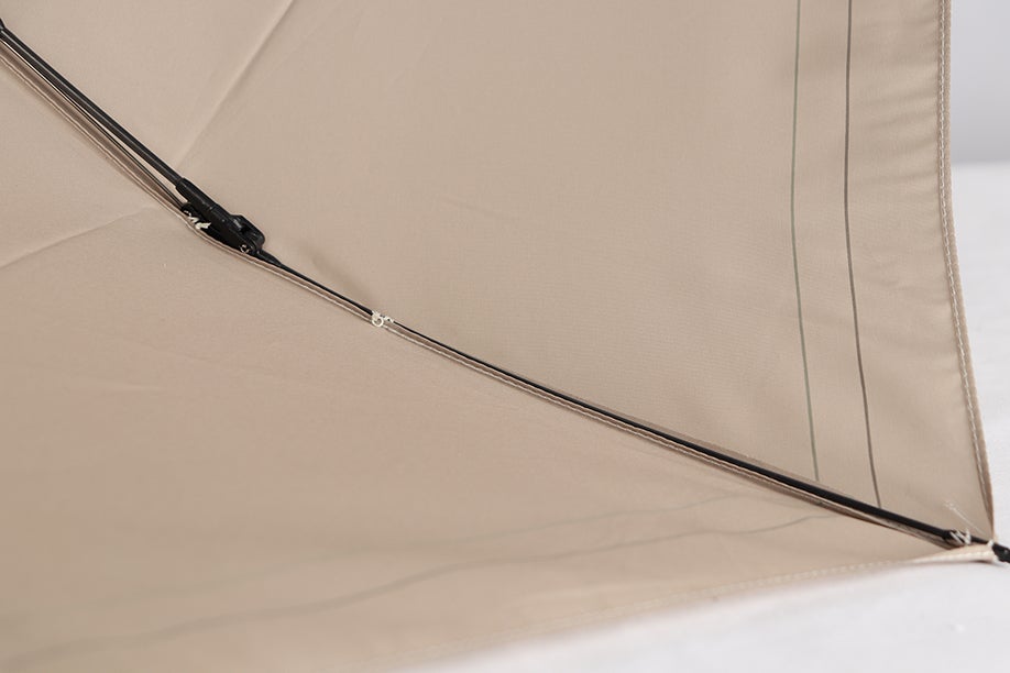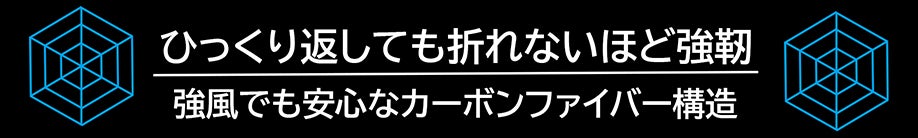 傘の親骨と受骨は軽量かつ強靭なカーボンファイバーを採用し、ひっくり返しても折れないほどの丈夫さを持っています。