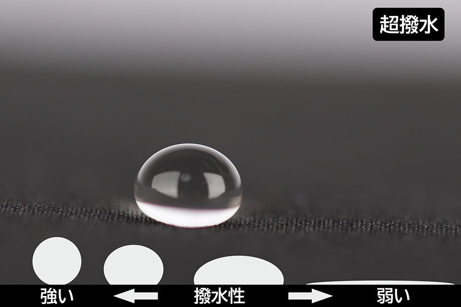 ※静止状態での水滴の状態から撥水性の強さを判断します。