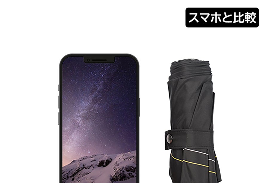 「Prelu」はカーボンファイバーを採用したため、同じサイズの折りたたみ傘の中でも超軽量クラスで、スマホより軽いです。