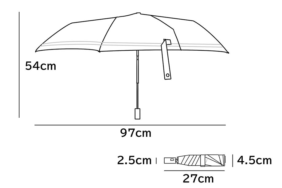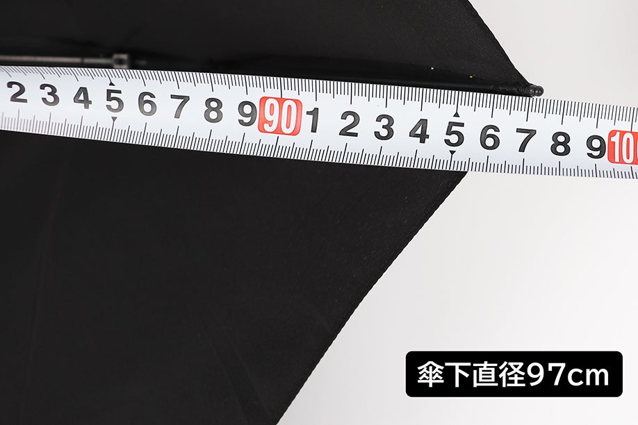 超軽量折り畳み傘として「Prelu」は傘下直径が97cmと、大人一人にちょうどいいサイズです。