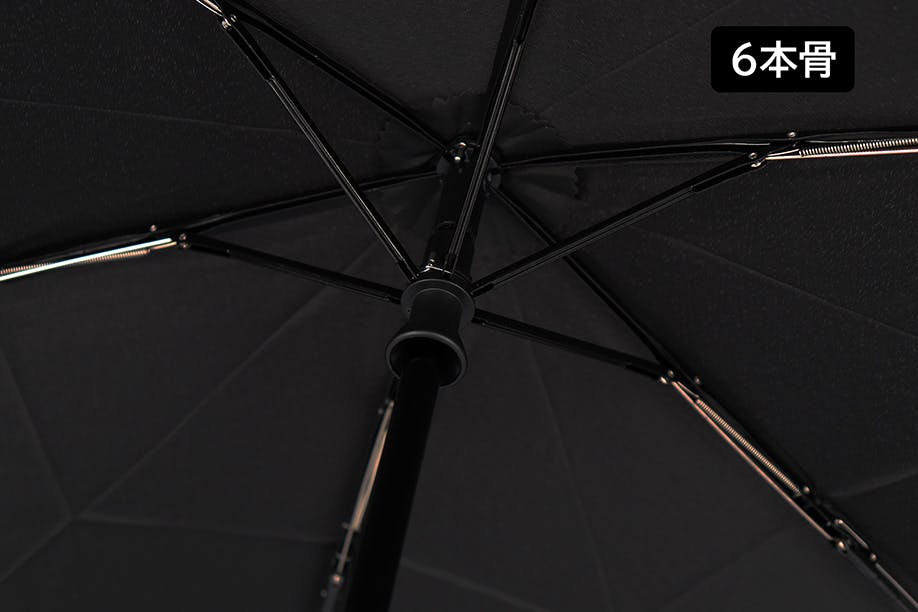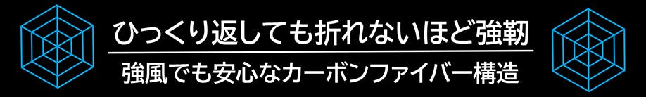 強靭なカーボンファイバーの6本骨と、アルミニウム合金から構成された中棒の組み合わせは強風や大雨などにあっても安心できます。