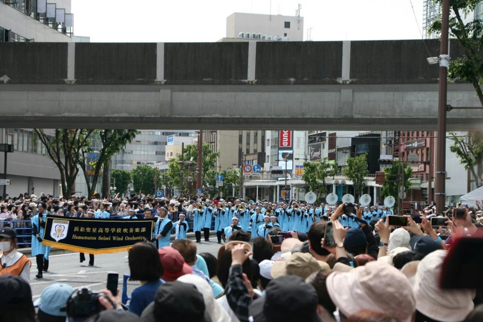 また、全日本高等学校吹奏楽大会in横浜や全日本高等学校選抜吹奏楽大会等の他の大会にもエントリーする傍ら、他校とのジョイントコンサートや、地域や地元企業様、文化振興財団などのイベントにも積極的に参加させていただき、活躍の場を広げています。特に今年度は市内で行われたNHK大河ドラマ「どうする家康」の騎馬武者行列でドラマ出演者の方々とパレードを披露したことはテレビや新聞でも大きく報道され、一生の思い出となるでしょう。