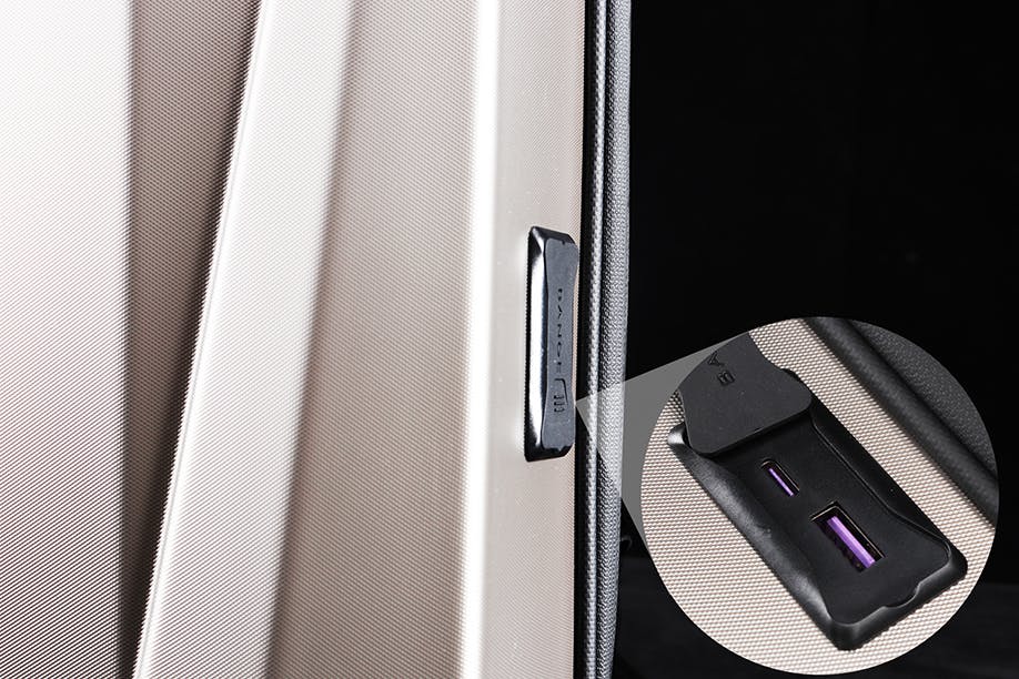 リュックの側面には一体化したUSB出力ポートを二つ備えています。
