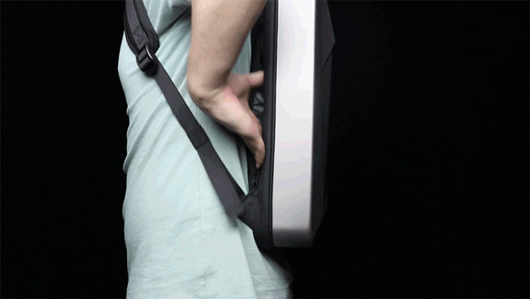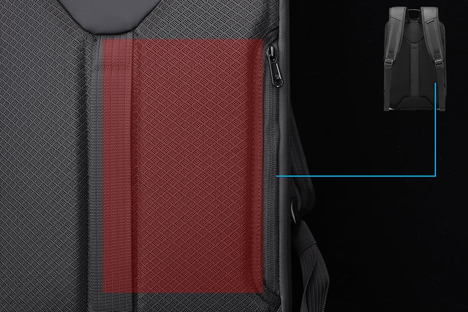 ハードなボディを採用し、形を維持することができるため、リュックの重心が常に中央にあります。