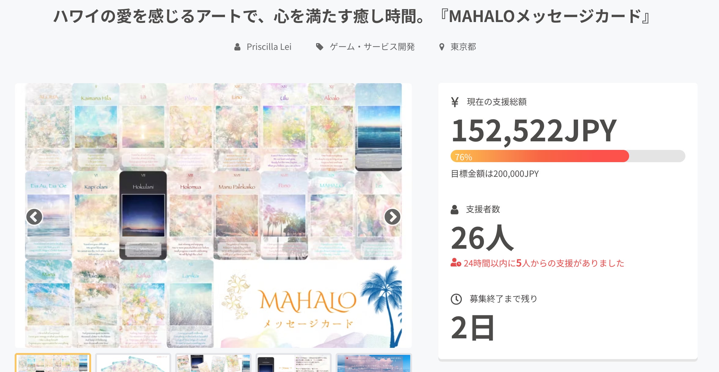 支援総額:152,522円(76%達成)