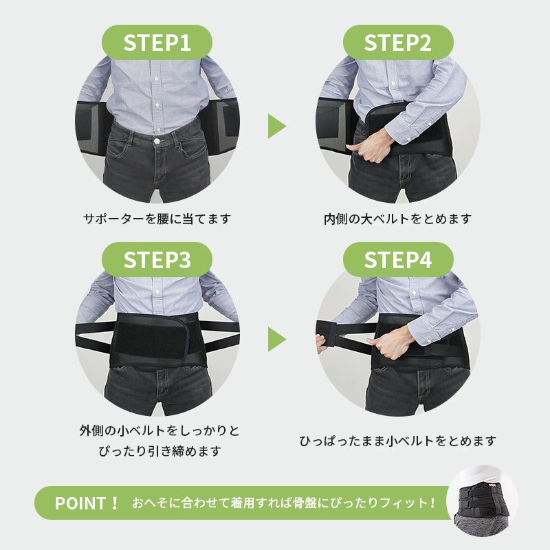 5. サポーターベルト部分の締め方や支持パネルを入れる方向などに注意して正しい着用方法に従ってご使用ください。