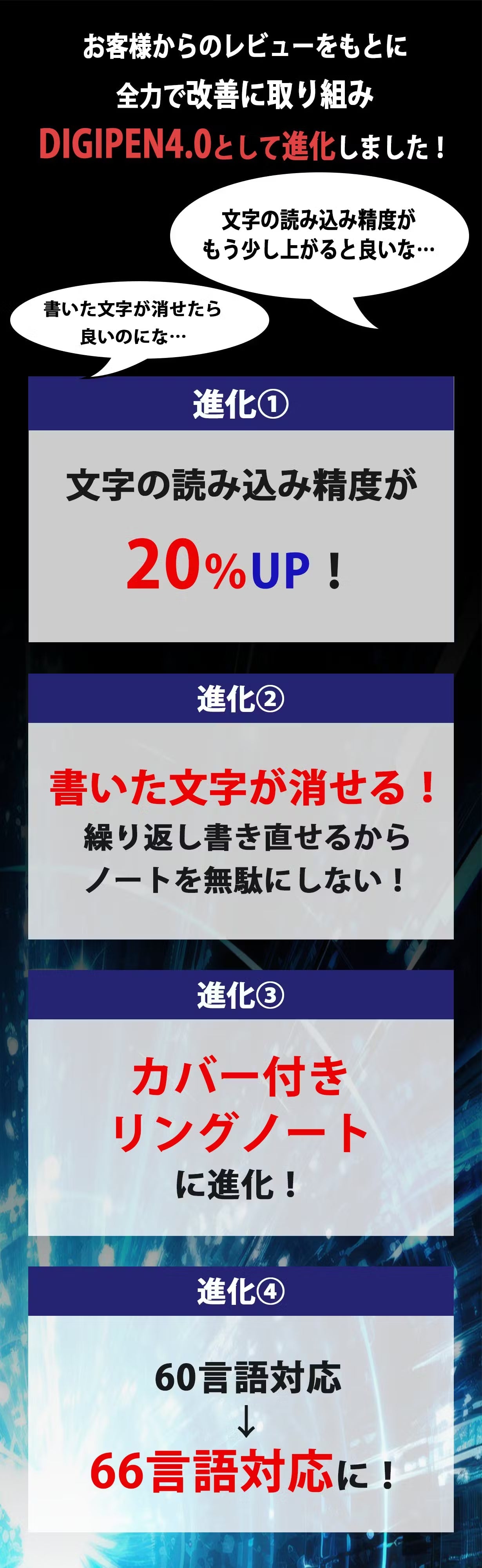 手書きメモをデジタル化するニーズが高まる中、NEWYES DIGIPEN 4.0は画期的な進化を遂げました。従来の手書きメモを取る体験を大切にしつつ、先端技術を取り入れることで、より使いやすく、便利なツールへと進化を遂げました。