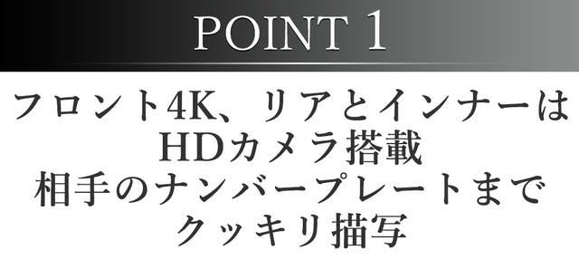 車内を映すインナーカメラと後方確認のリアカメラはHD(1920×1080P)という高解像度。