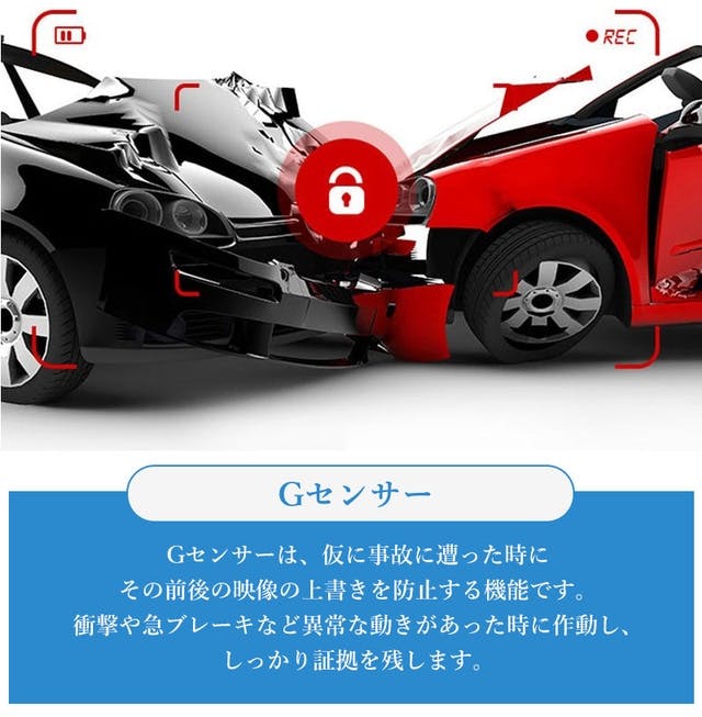 ②逆光補正、暗視機能、ループ録画、Gセンサー、パーキングアシスト、駐車監視など機能が充実