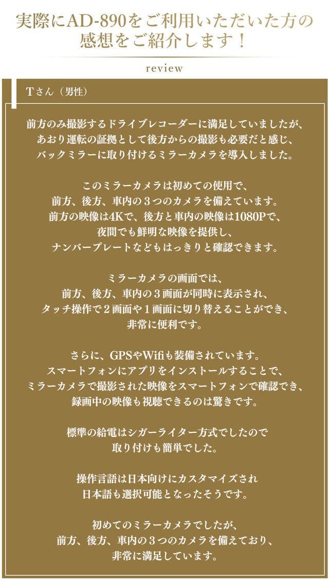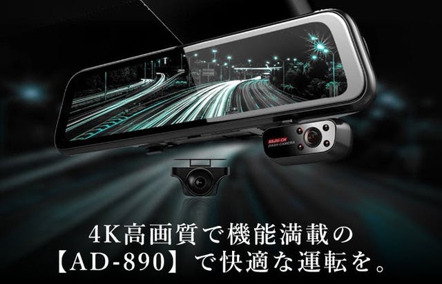 【AD-890】はフロント4K高画質カメラを搭載したルームミラー型のドライブレコーダーです。