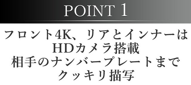 車内を映すインナーカメラと後方確認のリアカメラはHD(1920×1080P)という高解像度。