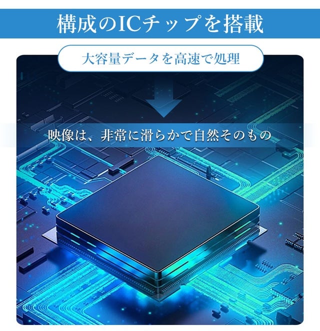 構成のICチップを搭載し、高解像度カメラで映した大容量データを高速で処理するため液晶モニターに映し出される映像は、非常に滑らかで自然そのもの。