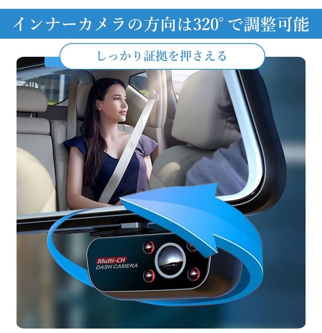 しかし、今回私が目にとまったこのミラーカメラは、フロントカメラとリアカメラのほか車内撮影用のインナーカメラを搭載した3チャンネルタイプでした。