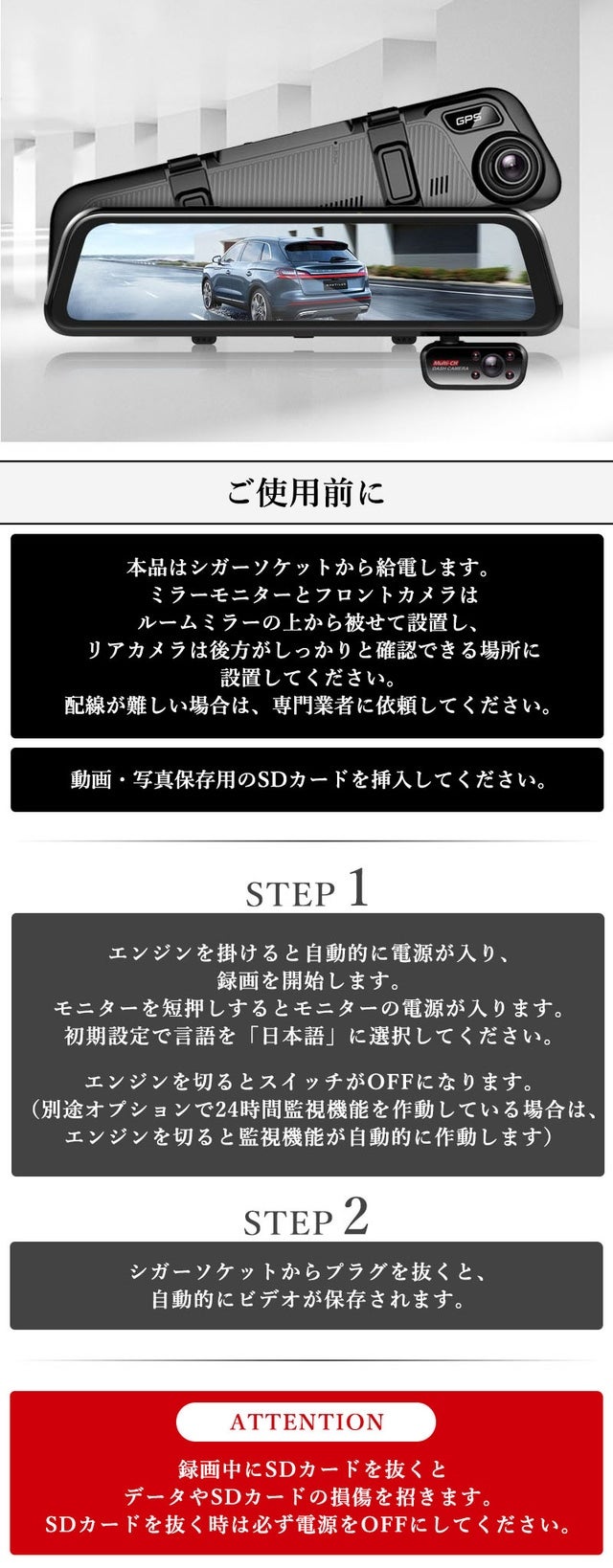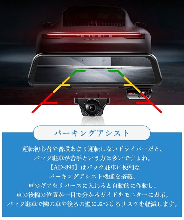 【AD-890】はルームミラー型のフロント4K高画質ドライブレコーダーです。