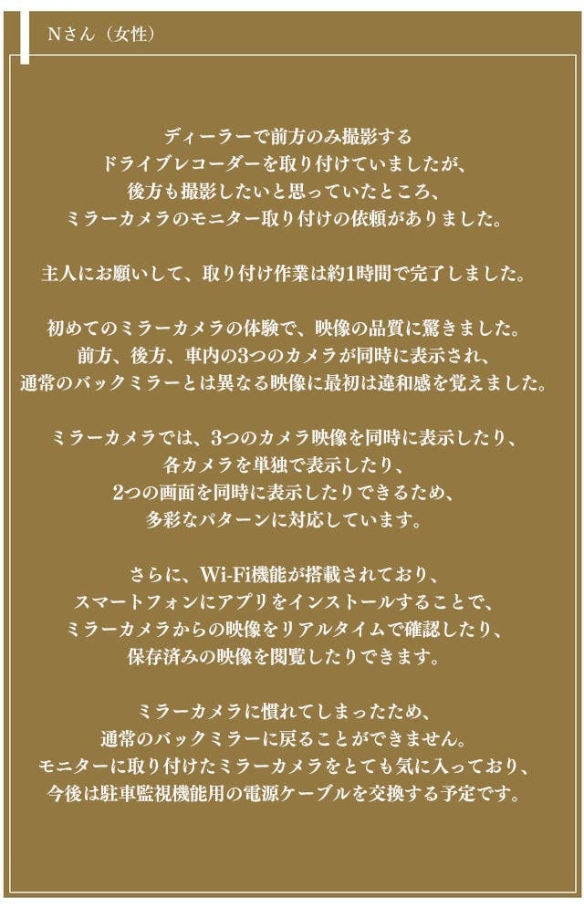 日本でもミラーカメラを取り付けたユーザーは多く見られるようになりました。