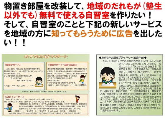 そして、物置状態の一室を自習室に改装して地元地域に開放したい。