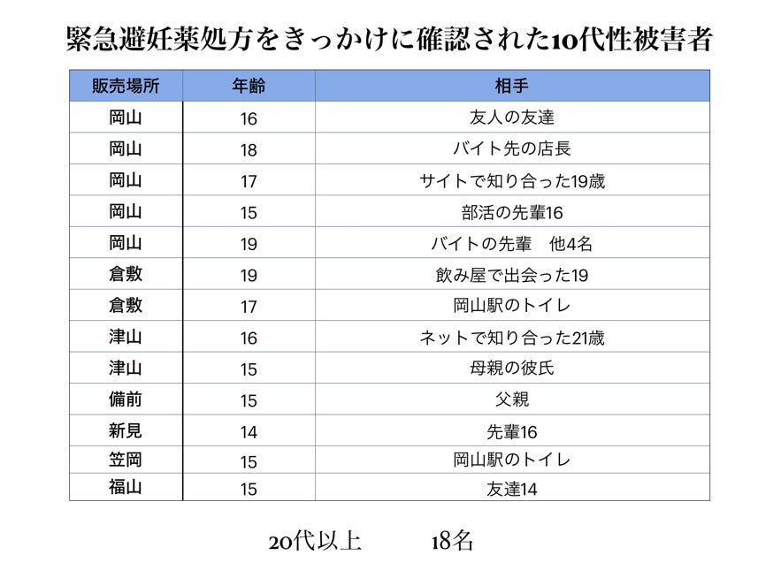 現在、中学生・高校生、性被害にあった女性には、無料で緊急避妊薬を服用していただいています。