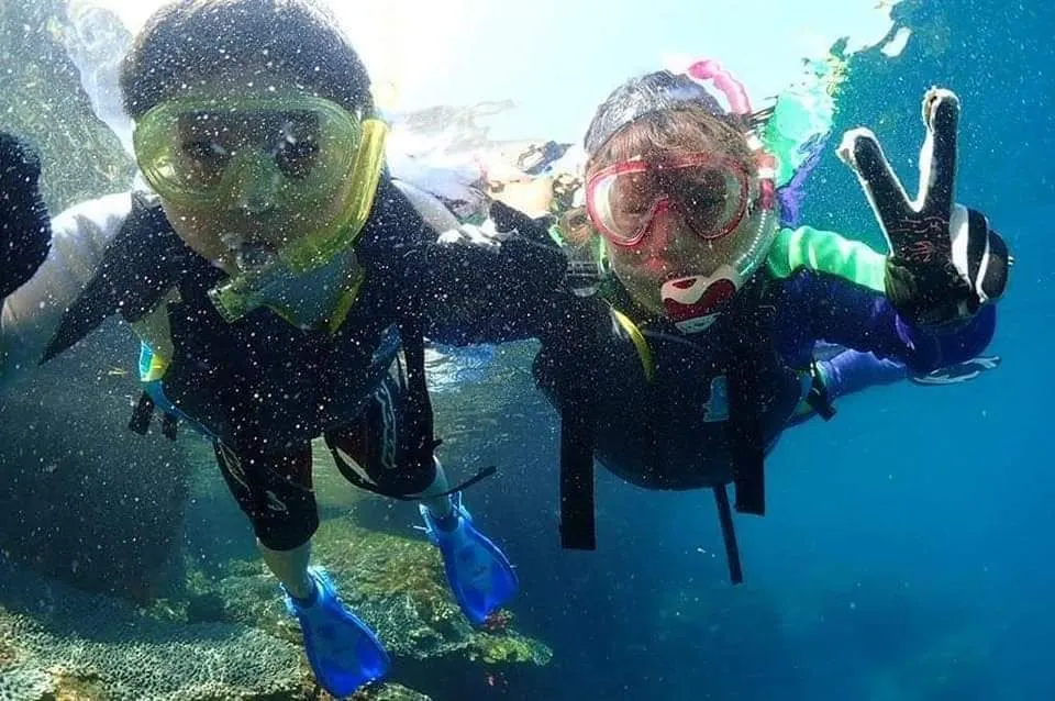 息子とシュノーケリングを楽しむ様子