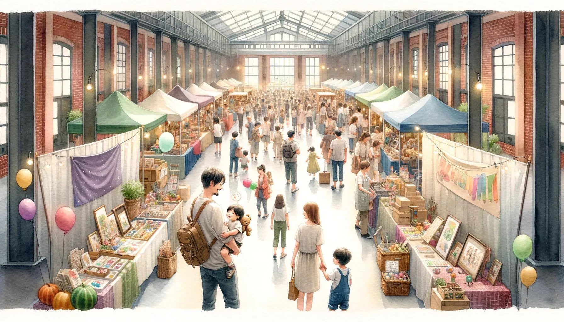 親子でマルシェを楽しむイメージ図。