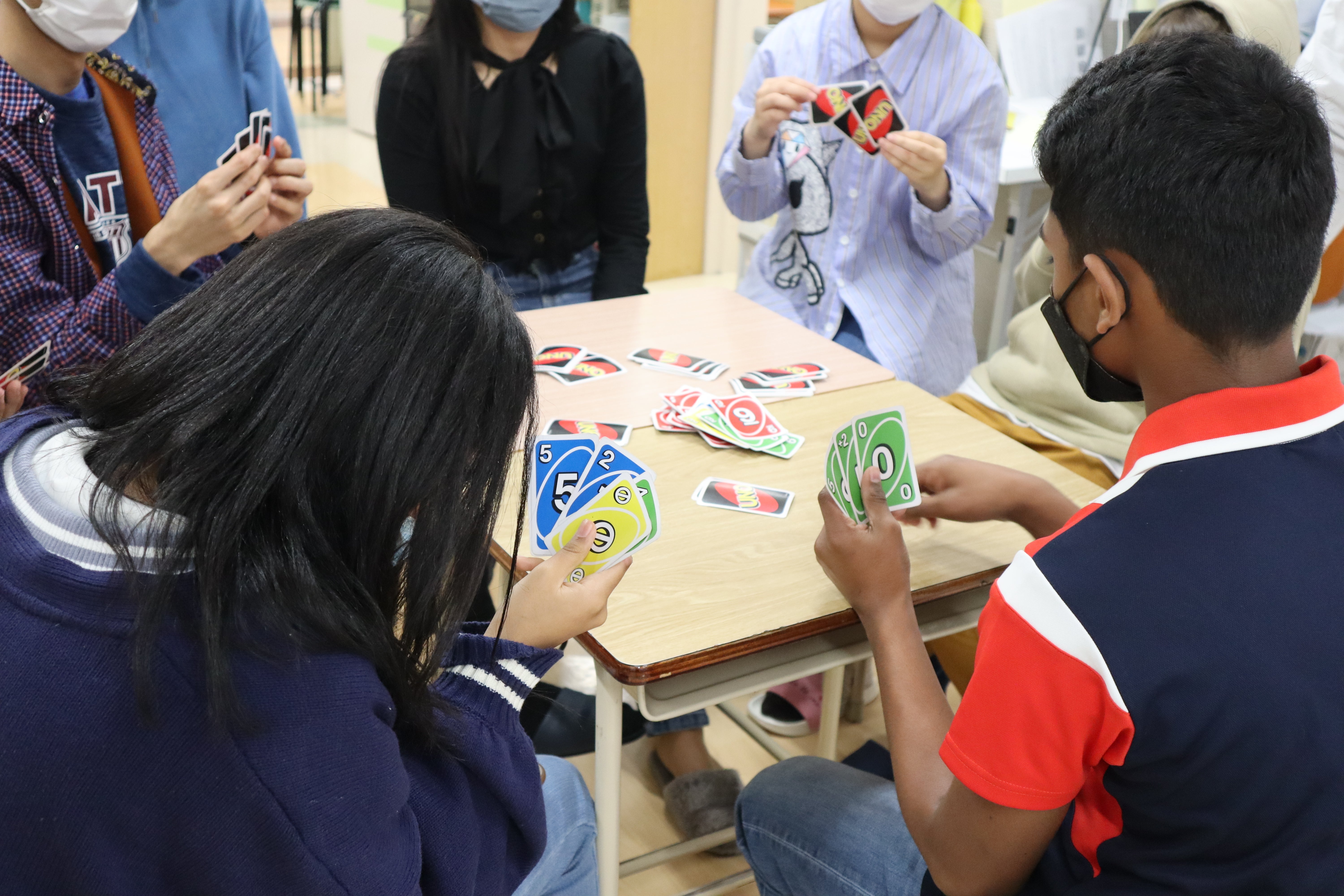 母語を思い切り使えることは、当スクールが生徒たちにとって心安らぐ場所となっている理由のひとつです。同時に、限定的でも日本語や英語を使いながら、多様な国にルーツをもつ子どもたち同士が友情を深めることも、気持ちの安定につながっています。