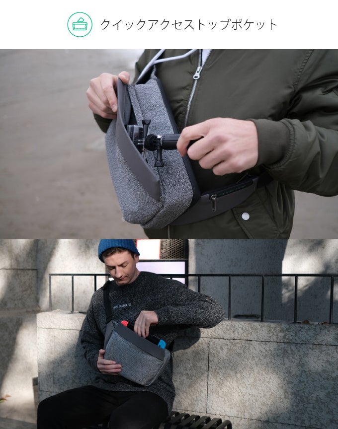 今回、SnapPackと同時リリースされるSnapSlingもコンパクトなボディながら、マグネットでパチッと開閉、防刃盗難防止機能を搭載したバッグとなります。ぜひ、SnapPackとセットでご検討ください。