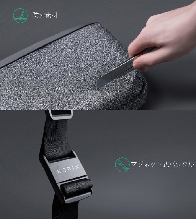 ハイスペックでハイセンスな防犯対策バッグをリリースするKorinDesignの「SnapPack」です。今回のSnapPackはパチンと開閉できるポケット」が搭載されたモデルとなります。同時リリースのSnapSlingも同時開催です。