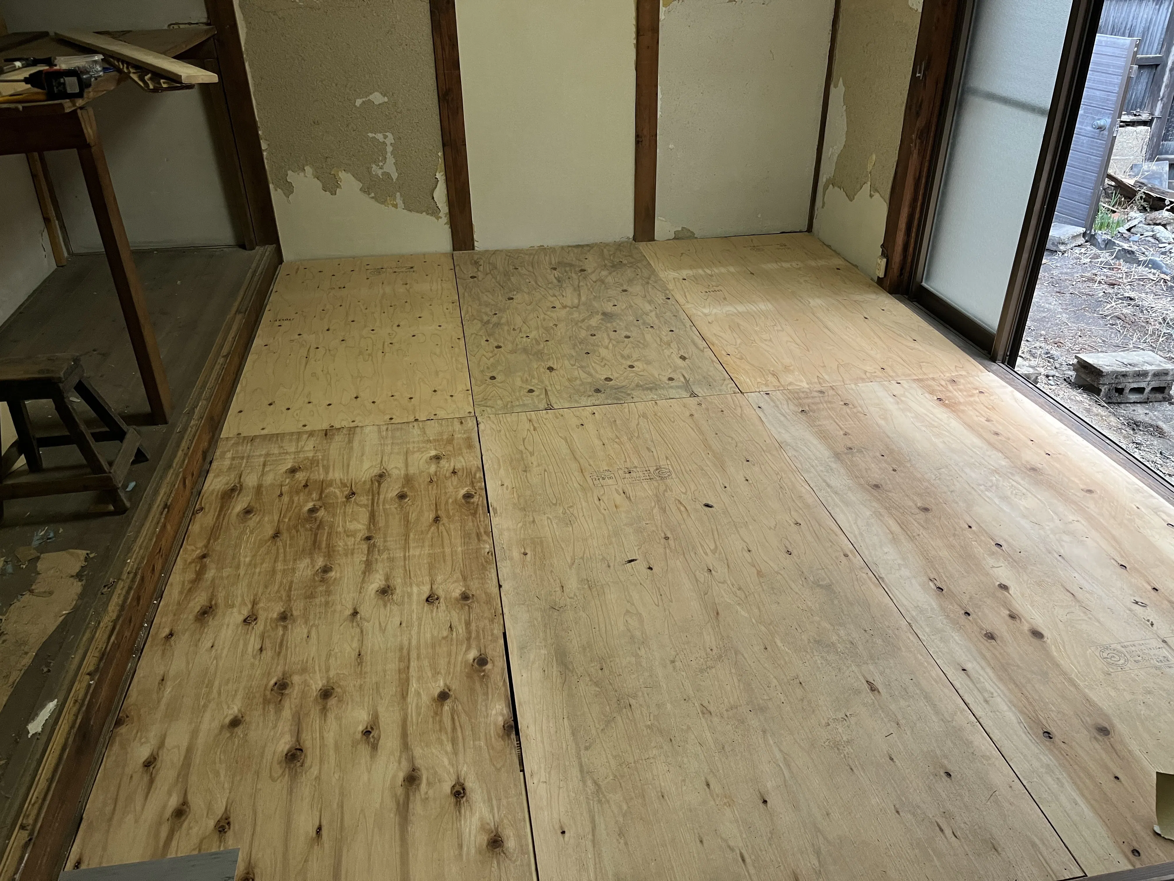 畳を撤去し壁紙剥がして床作って