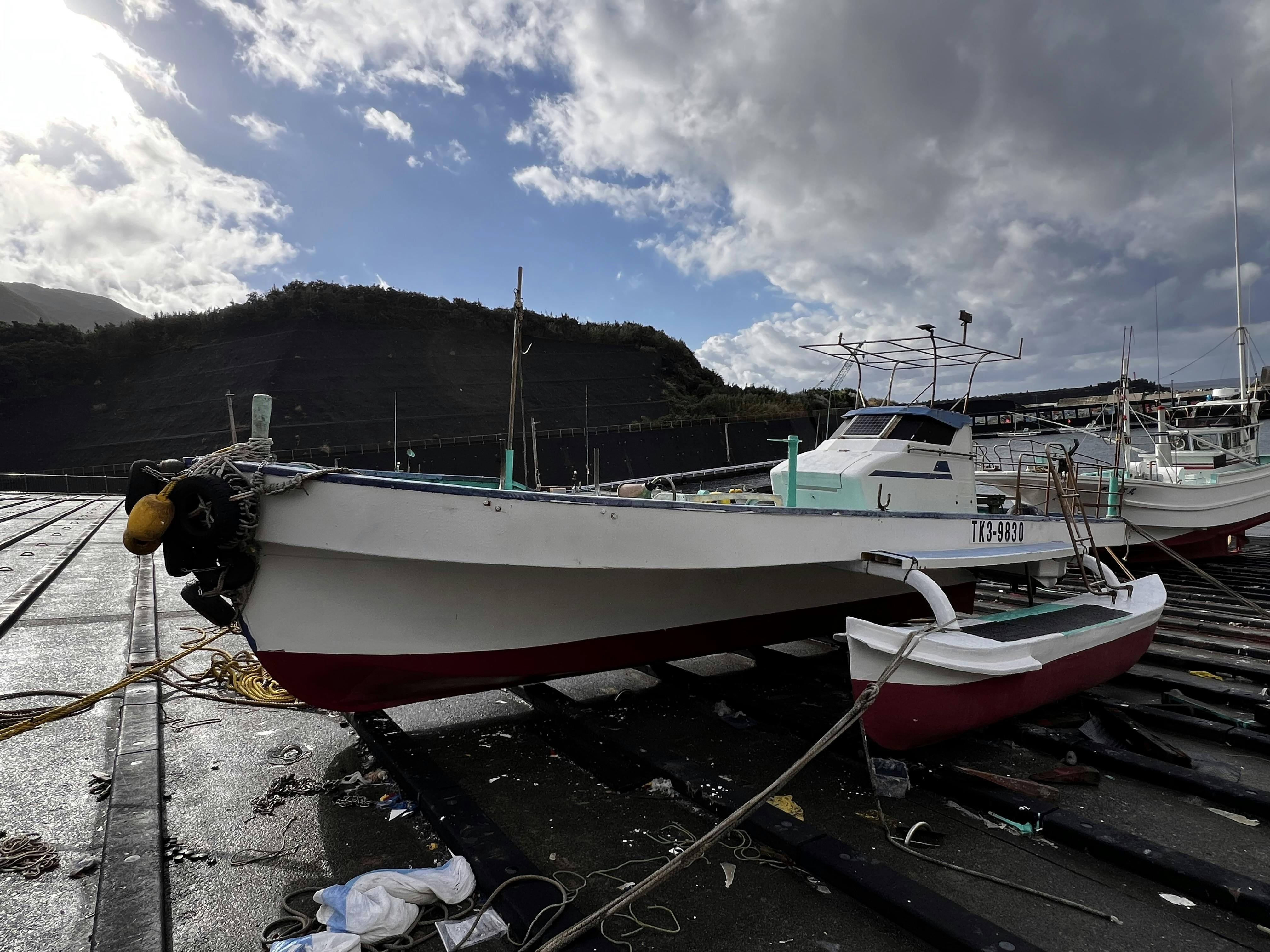 なので、私達にとってカヌーには、先端にタイヤが付いていて、岩場に上陸できるように工夫しています。その為カヌーは、とても重要に仕事のパートナーとなっています。どうか皆様のお力をお借りしながらカヌーを復活させもうすぐ始まる岩海苔漁を迎えれればと思っています。