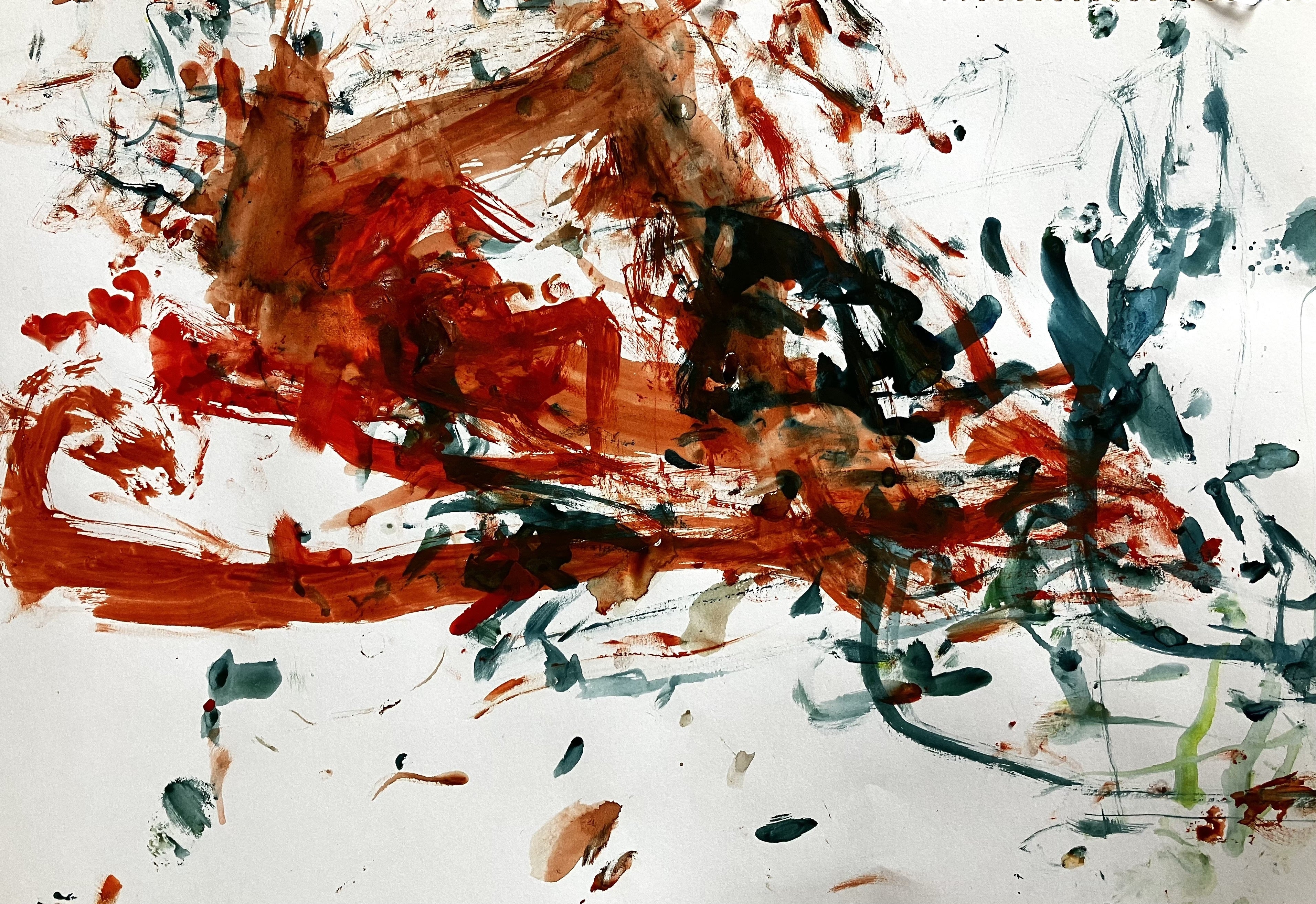 絵の具を手で触って、
