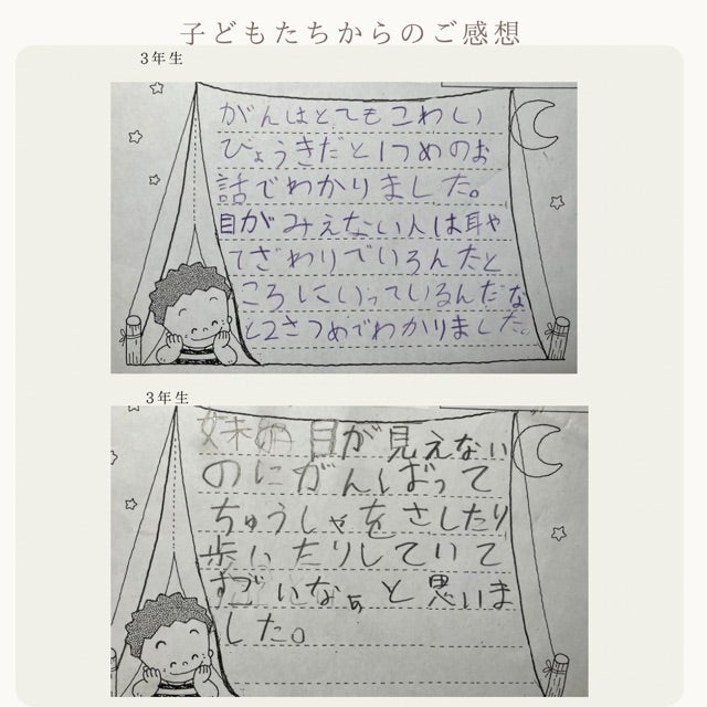 闘病生活は家族みんなで協力し合い、乗り越えなければならないことです。それを絵本にして形し、小児がんについて考えるきっかけにしたいと思いました。