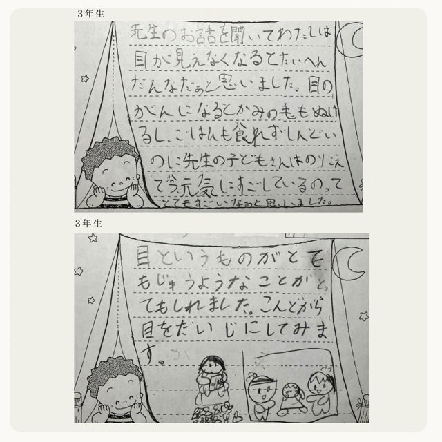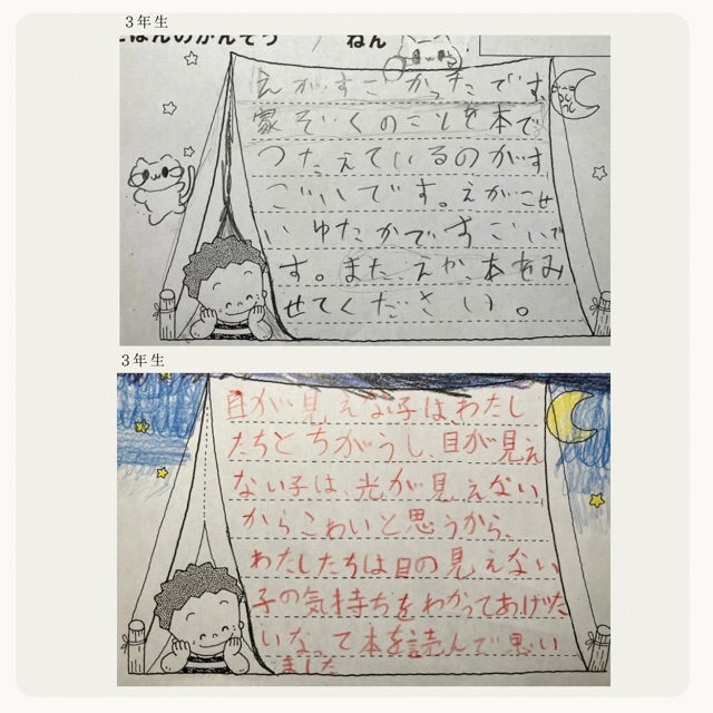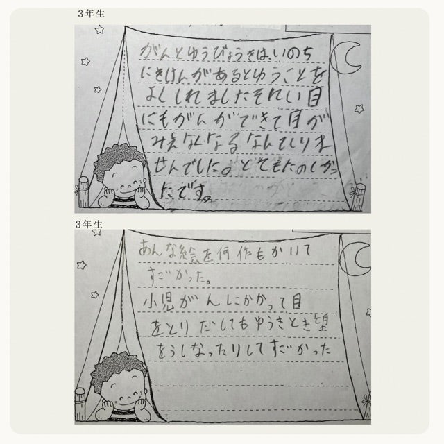 神戸市内の小学校に原画を持って読み聞かせに行ってきました。小学生の子どもたちからが感想を頂きました。一部を紹介します。